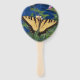 Fotografía de una mariposa amarilla y negra con un ventilador de mano