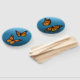 Mariposas monarcas elegantes en naranja contra un fondo oscuro azul, creando un diseño romántico e inspirado en la naturaleza. Ideal para los bodas al aire libre, al aire libre o con motivos de mariposa.