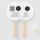 Logo de negocios en blanco y negro, abanicos de mano. Elegante, mínimo, código qr, medios sociales, fans promocionales de la mano. Personaliza tus datos.
