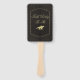 Enhance your derby party experience with this elegant gold equestrian themed hand fan. The background has a striped pattern over a faux golden image. The design features a race jockey icon, elegant script on a black outlined in a gold border. All text can be personalized with your event details, so this design can also be used for other events: derby watch party, horse birthday party, engagement party, shower, horse barn stables event. Colors are also editable to your taste.