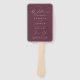 Elegante fan de la mano del programa de bodas con un moderno guión de caligrafía blanca con fondo morado para crear un diseño perfecto para bodas de todos los estilos y estaciones. Personalice la parte delantera del moderno programa de bodas con sus nombres, fecha y ubicación de boda, y mensaje de agradecimiento del personalizado. El ventilador del programa de bodas se invierte para mostrar el orden de servicio y una lista de tu fiesta de bodas. Se creó el ventilador de mano del programa de bodas moradas para coordinar con nuestra colección de bodas Modern Elegance.
