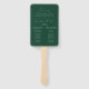 Elegante fan de la mano del programa de bodas con un moderno guión de caligrafía blanca con un fondo verde para crear un diseño perfecto para bodas de todos los estilos y estaciones. Personalice la parte delantera del moderno programa de bodas con sus nombres, fecha y ubicación de boda, y mensaje de agradecimiento del personalizado. El ventilador del programa de bodas se invierte para mostrar el orden de servicio y una lista de tu fiesta de bodas. El programa de bodas verdes se creó para coordinar con nuestra colección de bodas Modern Elegance.