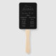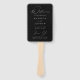 Elegante fan de la mano del programa de bodas con un moderno guión de caligrafía blanca con un fondo negro para crear un diseño perfecto para bodas de todos los estilos y estaciones. Personalice la parte delantera del moderno programa de bodas con sus nombres, fecha y ubicación de boda, y mensaje de agradecimiento del personalizado. El ventilador del programa de bodas se invierte para mostrar el orden de servicio y una lista de tu fiesta de bodas. Se creó el ventilador de mano del programa de bodas en blanco y negro para coordinar con nuestra colección de bodas Modern Elegance.