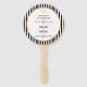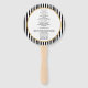 Motivo retro de arte blanco, negro y dorado monogramado boda bienvenida mano ventilador. Pegatina de estilo años 20. El diseño está decorado con una paleta dorada de colores amarillos, negros y blancos y con motivos inspirados en el estilo Art Déco y con motivos de rayas negras y blancas en el fondo.