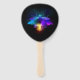 Luciérnagas mecánicas antiguas con bombilla de luz y finas alas brillan naranja, violeta, turquesa sobre fondo negro. Estilo Steampunk.