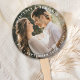 Agregue el toque final a su boda con estos abanicos de mano personalizados modernos y simples. Perfecto como favores de boda para todos sus invitados. Personalice estos abanicos de mano de boda con su foto de compromiso favorita, foto de recién casados, y personalice con nombre y fecha. Vea nuestra colección de bodas para favores de boda a juego, regalos de recién casados y recuerdos de recién casados. DERECHOS DE AUTOR © 2020 Judy Burrows, Black Dog Art - Todos los derechos reservados. Elegante Novia Novio Moderno Nombre Fecha Abanico de Mano de Boda con Foto