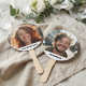 Novia Groom Her Photo Wedding Shower Game Hand Fan Paddles mostrando las caras y nombres de la pareja feliz - uno a cada lado! Perfecto para tu boda, ducha de novia, fiesta de soltero, juegos de boda y más. Póngase en contacto con nosotros en cedarandstring@gmail.com si necesita ayuda con el diseño o productos de coincidencia.