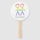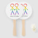 Este abanico de mano de papel presenta un diseño hermoso y práctico para la ceremonia de boda o la recepción. El gráfico representa a dos hombres, en forma de elegantes figuras de palos, tomados de la mano. Las figuras están coloreadas en un hermoso arco iris, simbolizando el amor y la diversidad. Este ventilador es una manera maravillosa de darle un toque cohesivo y significativo a su ceremonia, ayudando a sus invitados a mantenerse frescos mientras celebran su unión.