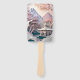 Un hermoso paisaje falso de papel recortado de fanáticos con montañas, pabellón y árboles.