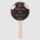Elegant personalized Quinceañera hand fans designed to complement a beautiful Mis Quince Años celebration. Featuring a rich burgundy background with rose gold script, these fans make a stylish and practical party favor for guests.