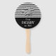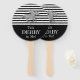 Mantén a tus huéspedes fiestas de burros al fresco con los fans de la mano con "Talk Derby to Me" y un falso caballo de carreras de purpurinas plateados sobre rayas negras y blancas en la parte superior y un sólido área negra en la parte inferior para tu personalización. COINCIDIENDO con los artículos de nuestra tienda.