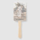 Moderno fan de la mano del programa de fotos de boda con un diseño simple con "el boda de" y las cabeceras en una tipografía de escritura de estilo rústico junto con los detalles de su boda sobre su foto favorita con un overlay opaco. Este elegante ventilador con un diseño minimalista es ideal para cualquier estilo de boda.