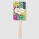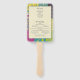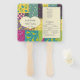 Cree un ventilador de programa de boda personalizado para su día especial. Este programa de abanico de mano muestra un gráfico de forma cardíaca sobre un fondo de tejido de retazos florales en el frente con un diseño coordinado en la parte posterior que se puede personalizar con la lista completa de eventos y fiestas de boda.