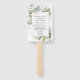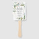 Hermoso programa de bodas que también ayudará a mantener a sus invitados al fresco. Este abanico de manos se convierte en un hermoso programa de bodas. La ceremonia del boda está delineada en el frente y la parte del boda en el reverso. Un marco dorado elegante rodea el texto. Está decorado con flores rosas. Las hojas y las viñas verdes de sabio le dan un ambiente botánico moderno. Proyecto perfecto de boda DIY para darle a la ceremonia de su boda un toque muy personal. Forma parte de la colección Botánica de Oro que contiene muchos elementos de coordinación para la papelería, ceremonia y recepción de su boda. Por favor, contáctame si necesitas ayuda para encontrar algo.