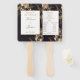 Abanico de mano de programa de boda con arreglo floral metálico dorado. Ofrezca a sus invitados de boda estos hermosos y detallados programas de boda en forma de abanico de mano, les encantará. Este diseño presenta una composición floral metálica dorada moderna, pero tradicional, sobre un fondo negro; contiene hermosas fuentes de escritura, que lo hacen muy único y especial. Para una mayor personalización, haga clic en el enlace "personalizar más" y use la herramienta de diseño para modificar esta plantilla. Haga clic en este enlace para ver todos los artículos de esta Colección de Boda Floral Metálica Dorada. Por favor, póngase en contacto conmigo si tiene alguna pregunta. Diseño @Miri Creations.