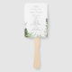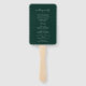 Follaje del Bosque Salvaje, abanico de mano para programa de boda. Tipografía en blanco y negro con colores de fondo coordinados blanco y verde esmeralda.