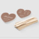 Un simple pero elegante fan del programa de bodas en forma de corazón. El fondo es un moderno tono marrón, el texto es blanco. Los títulos y nombres (y las iniciales) de la novia y el novio están escritos en un elegante guión caligráfico, el resto en mayúsculas. En la parte trasera, tiene a la izquierda el programa de ceremonia de boda y, en el lado derecho, la fiesta de boda (con dos columnas diferentes para el equipo de novias y el equipo de novios). Y debajo de ellas un breve mensaje de agradecimiento.