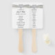Los abanicos de programa de boda son una opción popular para las ceremonias de verano. Es una forma elegante de mantener a los invitados de la boda frescos y proporcionar los detalles importantes mientras dicen "Sí, acepto". ¿Está celebrando su evento al aire libre? No es de extrañar que la gente necesite algo para mantenerse fresca. Es por eso que un abanico de mano de programa de boda personalizado es el regalo perfecto para dar en su boda. Personalice y cree agregando y cambiando el texto en los campos proporcionados. Puede cambiar el estilo de fuente, tamaño y color, así como el tipo de papel.