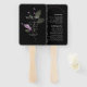 Delicados arreglos florales, contornos de arco sutiles y fuentes modernas sans serif en una paleta de colores de lila, malva y verde sabio suave, se combinan con fondos negros y blancos para dar a las piezas de esta elegante suite nupcial un ambiente romántico y acogedor. El ventilador de la mano del programa de boda que se muestra aquí proporciona una plantilla para añadir fácilmente los detalles de tu ceremonia y/o fiesta de boda junto con un mensaje de bienvenida personal. Buscar ID998 para ver la colección completa.