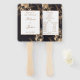 Abanico de mano de programa de boda con arreglo floral metálico dorado. Ofrezca a sus invitados de boda estos hermosos y detallados programas de boda en abanico de mano, les encantará. Este diseño presenta una composición floral metálica dorada moderna, pero tradicional, sobre un fondo negro; contiene hermosas fuentes de escritura, que lo hacen muy único y especial. Para una mayor personalización, haga clic en el enlace "personalizar más" y use la herramienta de diseño para modificar esta plantilla. Haga clic en este enlace para ver todos los artículos de esta Colección de Boda Floral Metálica Dorada. Por favor, póngase en contacto conmigo si tiene alguna pregunta. Diseño @Miri Creations.