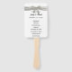 Los aficionados al programa de bodas son una elección popular para las ceremonias de verano. Es una manera elegante de mantener a los bodas frescos y dar los detalles importantes como dicen "yo hago". ¿Organizando tu evento fuera? No sorprende que la gente necesite algo para mantenerlos frescos. Es por eso que un fan personalizado de la mano del programa de boda es el regalo perfecto para regalar a tu boda. Personalice y cree agregando y cambiando el texto en los campos proporcionados. Puede cambiar el estilo de fuente, el tamaño y el color, así como el tipo de papel.