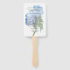 Programa de bodas de hidrangea azul en palos. Los programas de ventiladores portátiles tienen hermosas flores azules realistas en ambos lados. La información del programa está impresa y en caracteres de escritura modernos en negro. Un panel blanco transparente claro sostiene el texto sobre un gran tallo de flores de horangea azul con hojas verdes. Este tipo de programa es perfecto para cualquier ceremonia al aire libre, como un boda de patio trasero. El ventilador funciona de doble manera, ya que es informativo y se puede usar para mantenerse fresco y mantener a los insectos lejos.