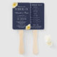 Sencilla Marina Moderna Azul Roses Azules Script Floral Wedding Program Hand Fan. Fanático de boda sencillo y moderno con programa de boda. Este moderno menú boda tiene bonitas rosas amarillas en las esquinas sobre un fondo azul marino oscuro y un texto blanco moderno. Puedes fácilmente personalizar todo el texto en el ventilador - personalizarlo con los nombres de novias y novios, fecha y ubicación del boda, programa de boda...