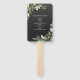 El abanico de mano para programa de boda con hojas de follaje moderno verde oscuro combina la funcionalidad con el estilo de una manera única y elegante. Esta encantadora pieza presenta un patrón de hojas moderno en una paleta verde oscuro exuberante, impresa en papel de alta calidad. El reverso proporciona detalles del programa de la boda en una tipografía limpia y fácil de leer, cumpliendo el doble propósito de mantener a sus invitados informados y cómodos. Es el accesorio perfecto para una boda de verano o una ceremonia al aire libre, que se ajusta perfectamente a una boda con temática rústica, bohemia o moderna. Este diseño de boda moderno personalizado se puede personalizar fácilmente con los detalles de su boda.