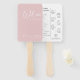 Programa de Pictogramas de caligrafía de Rubor Fan de la mano Simple, moderno y minimalista en estilo, programa de bodas de color rubor con título caligráfico extraíble. La parte posterior del programa incluye detalles de la ceremonia del boda e incluye iconos o pictogramas en negro.