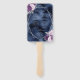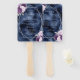 Este elegante fan del programa de bodas presenta un marco geométrico de plata decorado con ramos de flores de lila, púrpura y plata. El texto aparece en elegantes letras de color gris plateado y fuentes de copperplate sobre un fondo de Relieve metalizado falso azul marino.