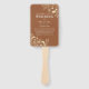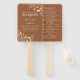 Elegantes y modernos abanicos de mano para programa de boda de terracota naranja quemada bohemio con encaje de flores silvestres doradas y letra de caligrafía simple.