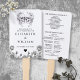 Este abanico de mano del programa de boda floral de calaveras góticas se puede personalizar con su información en tipografía chic. Diseñado por Thisisnotme©