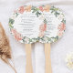 Nuestro fan del programa de bodas de moda de jardín cuenta con detalles de la ceremonia con elegantes letras, rodeadas por una corona de flores acuáticas en exuberantes tonos rosa, crema, melocotón y verde salvia. Revertir muestra los miembros de la fiesta de boda con campos de texto fácilmente modificables. Se coordina con nuestra colección de invitaciones de bodas florales de verano para bodas de verano, primavera, exterior o jardín. Utilice los campos de plantilla para agregar la información de la ceremonia y de la fiesta nupcial y, a continuación, haga clic en "Personalizar" para cambiar la posición de los elementos si fuera necesario. ¿Necesitas ayuda? Contáctame a través del enlace "Preguntar a este diseñador" en esta página.
