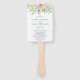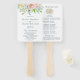 Elegantes abanicos de mano para programa de boda floral que cuentan con un borde superior de vegetación y flores de acuarela en rosa, melocotón, lavanda, blanco y azul. Estos abanicos de mano para boda proporcionarán a sus invitados el orden del servicio y son perfectos para una boda de primavera.