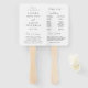 Abanico de mano de programa de boda moderno con un diseño simple y una distribución minimalista. Las fuentes son una combinación de una fuente serif clásica y una escritura elegante.