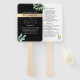 Programas de boda modernos, elegantes, botánicos, chic, dorados y negros, con abanicos a mano de vegetación en acuarela y letra de caligrafía simple.