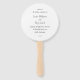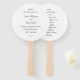 Abanico de mano de programa de boda moderno con un diseño simple con su monograma y detalles del evento en una escritura a mano.