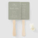 Este moderno fan del programa de bodas presenta escritura blanca y texto sans serif en un fondo verde sabio.