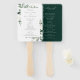Marco de vegetación botánica natural, ventilador de la mano del programa de boda. Vegetación acuática con acentos foliares dorados y color de fondo verde esmeralda.