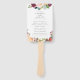 Este fan del programa de boda floral tiene un elegante tema otoñal. Las flores caídas bordean la parte superior e inferior del ventilador. En la parte delantera, la floral de otoño enmarca los detalles de la ceremonia boda. En la parte trasera, las flores acuáticas enmarcan la información de la fiesta de boda.