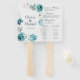 Mantén a tus invitados fresco y elegante durante tu ceremonia de boda con nuestro ventilador de mano del programa de boda floral fuera de blanco y Verde azulado. Este accesorio boda único y práctico funciona como un programa, proporcionando a los huéspedes información esencial sobre su día especial mientras los mantiene refrescantes en la cálida brisa tropical. Con un cautivador ilustracion acuático de hermosos florales y botánicos verde azulados y blancos, este ventilador le añade un toque de elegancia romántica boho a su decoración boda. Todos los ventiladores de mano del programa de bodas floridas fuera de blanco y Verde azulado están equipados con un asidero robusto para facilitar la celebración y el ondeo, asegurando que sus huéspedes se sientan cómodos y comprometidos durante toda la ceremonia.