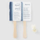 Fanático moderno y creativo del programa de bodas con un diseño sencillo con una pincelada artística de color azul marino en la parte izquierda, sobre un fondo blanco. En la parte superior derecha están los nombres en una letra manuscrita alineada a la derecha. En la parte inferior izquierda están los eventos de la ceremonia en una fuente sans serif, en alineación a la izquierda. El trasero tiene tu fiesta de bodas. Si vas a tener un boda al aire libre, estos únicos aficionados son excelentes para ofrecerte a tus huéspedes para que te ayuden a mantener el frescor y también a hacer un gran recuerdo.