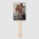 Moderno fan de la mano del programa de boda con un diseño sencillo pero elegante con su monograma inicial en un tipo de letra de escritura contemporánea junto con los detalles del evento rodeado por un borde, sobre su foto favorita.