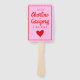 Ventilador de mano del programa de bodas de escritura digital moderna de color rosa rojo