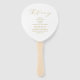 Estos elegantes fanáticos de la mano del programa de bodas presentan un diseño de tipografía de oro falso sobre un fondo blanco. Personaliza con los nombres de novias y bodas en la parte delantera y los detalles de tu ceremonia en la parte trasera. Diseñado por Susan Coffey.