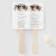 Elegante Fan de la Mano del Programa de Boda floral de otoño con flores pintadas de acuarela en la profunda y rica sombra del vino de borgoña con un trasfondo morado junto con sus nombres y cabeceras en un moderno sans serif.