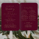 Este elegante y moderno fan del programa de bodas presenta un texto de color dorado sobre un fondo burdeos. Los títulos y subtítulos aparecen en un hermoso guión de escritura a mano, con el texto restante en letra sans serif.