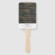 Ventilador de mano del programa de bodas rusticas de madera oscura. El diseño tiene una textura de fondo de madera oscura y un guión blanco moderno. Personaliza todo el texto del ventilador. Haga clic en el vínculo de colección debajo del ventilador para buscar más elementos coincidentes.