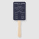 Mantén a tus invitados fresco y elegante durante la ceremonia de tu boda con nuestro Fan de la Mano del Programa de Bodas de Bodas de la Noche Starry. Este accesorio boda único y práctico funciona como un programa, proporcionando a los huéspedes información esencial sobre su día especial mientras los mantiene refrescantes en la cálida brisa tropical. Con un cautivador ilustracion acuático de un hermoso bosque nocturno de noche estrellado azul medianoche, este abanico de mano le añade un toque de elegancia romántica boho a su decoración boda.