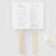 Ventilador de la mano del programa de bodas de estilo clásico con palabras de acento en una elegante tipografía caligráfica. Todo el texto está en azul polvoriento sobre un fondo blanco y puede cambiarse a cualquier color que desee haciendo clic en el botón "personalizar". Estos fans del programa de bodas son perfectos para un boda formal.